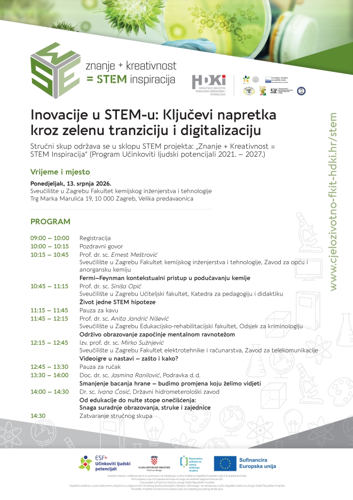 Stručni skup održava se u sklopu STEM projekta: „Znanje + Kreativnost = STEM Inspiracija“ (Program Učinkoviti ljudski potencijali 2021. – 2027.). Projekt je sufinanciran sredstvima Europskog socijalnog fonda plus (ESF+) i Državnog proračuna Republike Hrvatske (SF.2.4.06.04.0015)